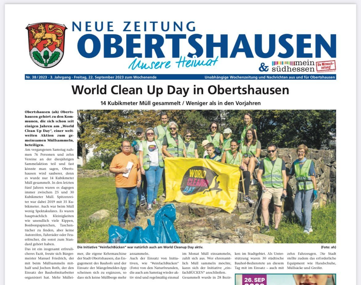 Wir freuen uns als #einfachBÜCKEN dieses Jahr als Co-Organisator den World Cleanup Day am 17. September 2022 zu unterstützen. Zusammen mit der Stadt Obertshausen beteiligt wir uns auch dieses Jahr wieder an dem weltweiten Aktionstag -